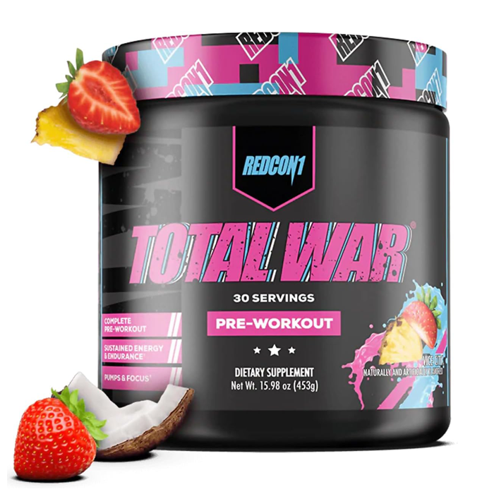 Vous recherchez le complément pré-entraînement ultime pour booster vos performances ? Découvrez la formule pré-entraînement numéro 1 des ventes de REDCON1 ! TOTAL WAR est une poudre pré-entraînement tout-en-un qui combine efficacement endurance, congestion musculaire, énergie et concentration.